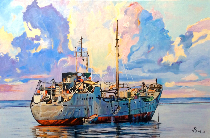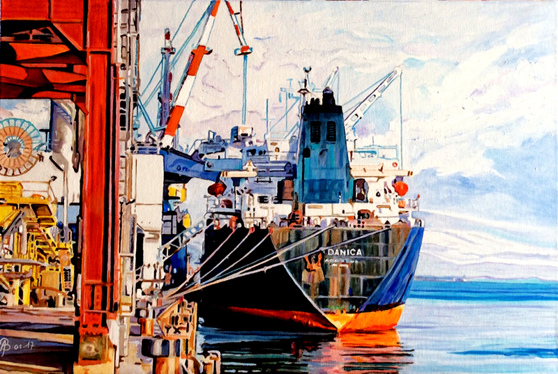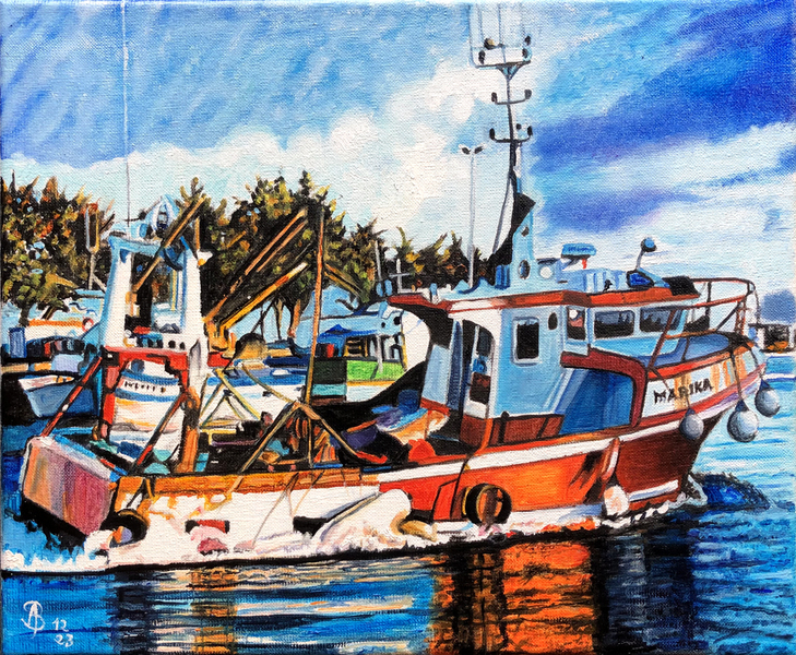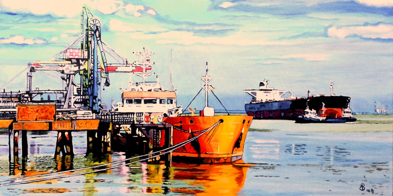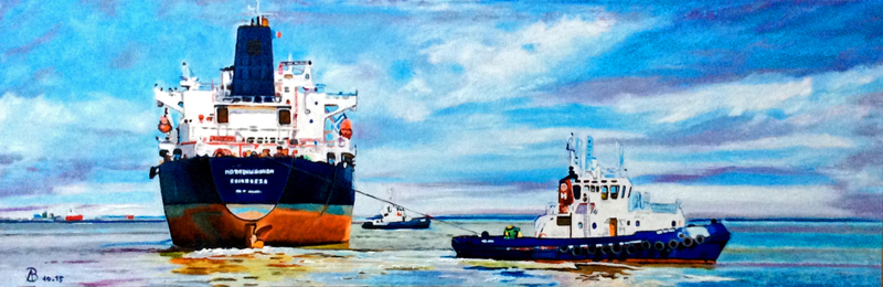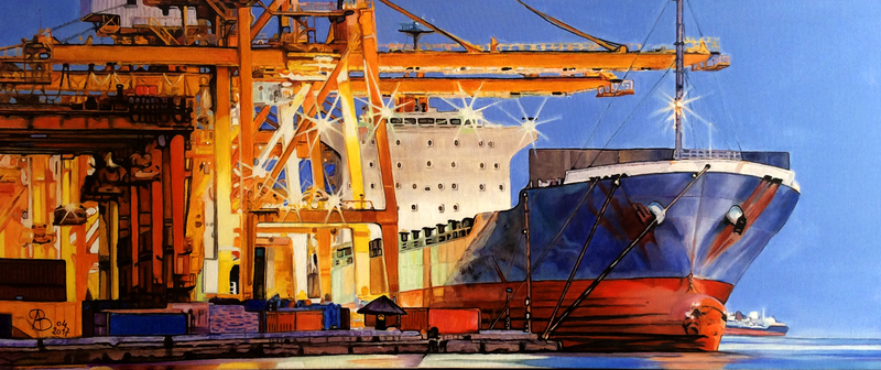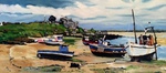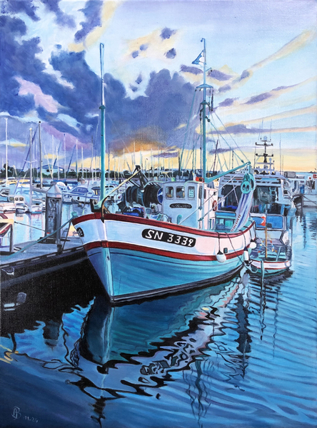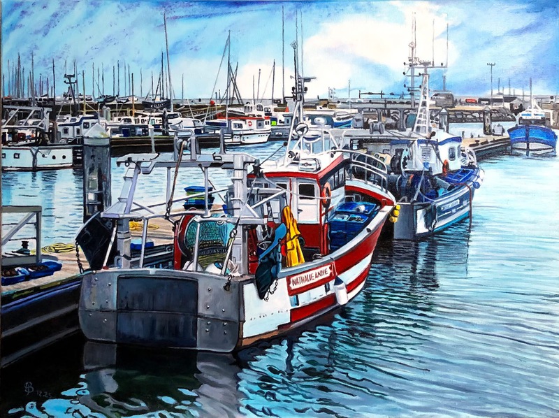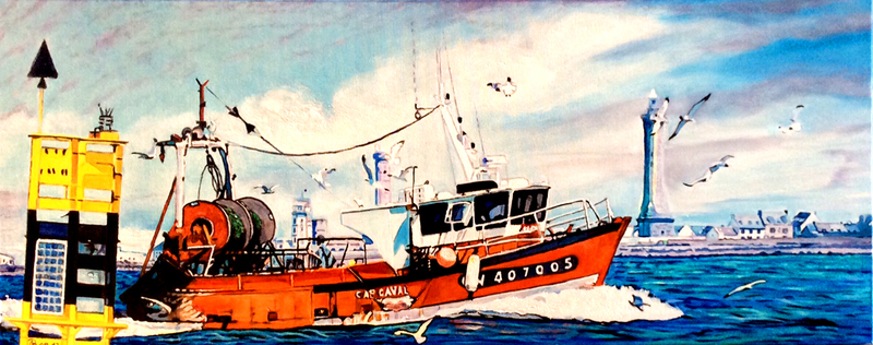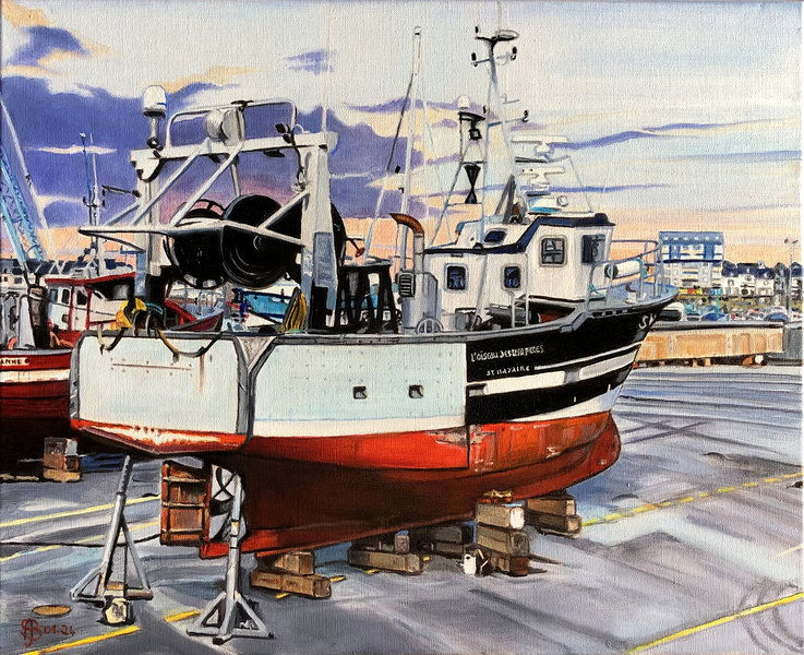 In this seascape album you will find a reflection of what makes the charm of our Breton coasts - Beaches but also ports in all their variety, fishing as well as commercial and industrial ports. The hulls of ships and boats' often unexpected hues are exciting themes. As for the ever-changing skies they are a real challenge for the painter.